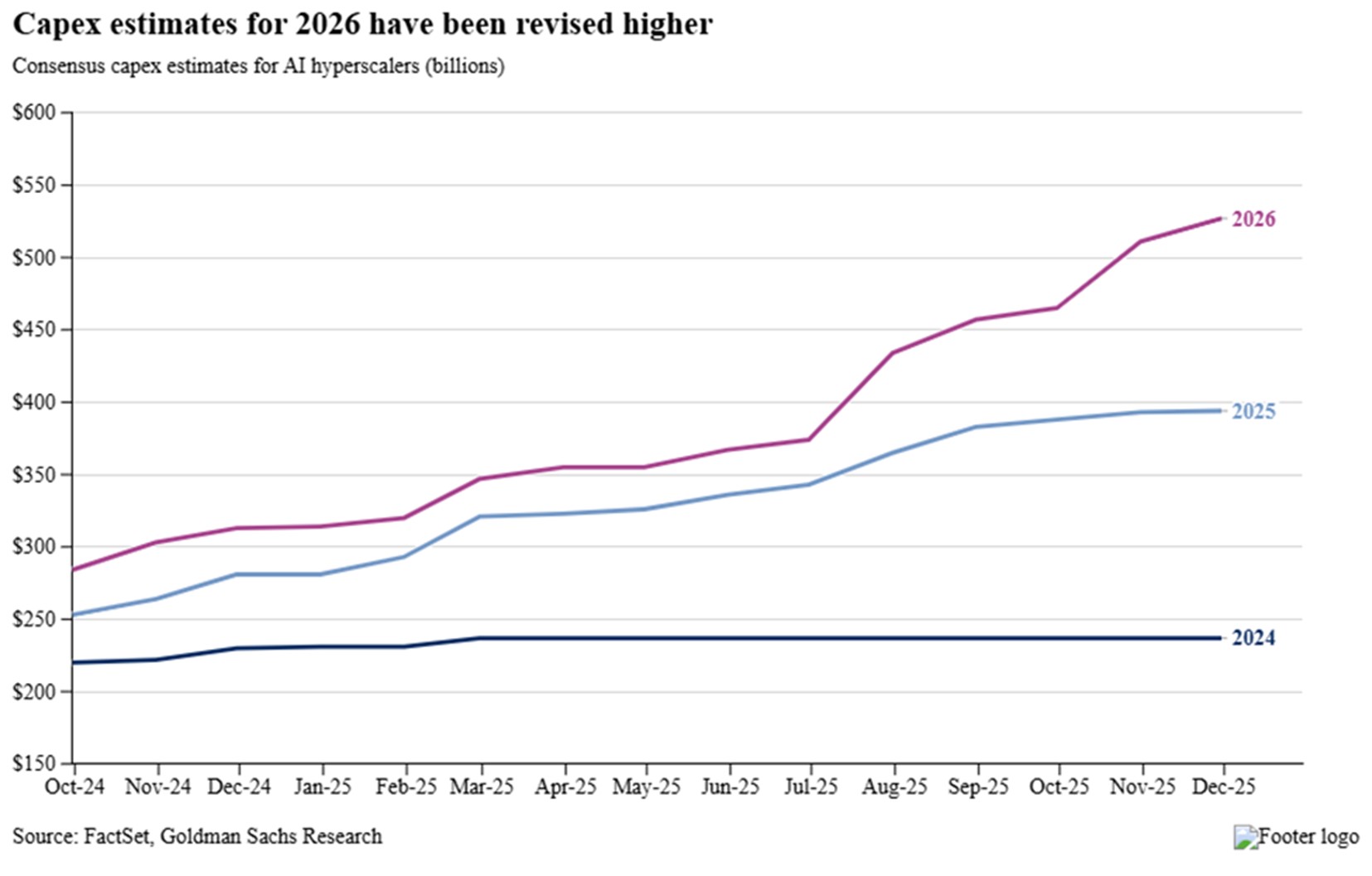 Capex Estimates for 2026 Have Been Revised Higher” - https://www.goldmansachs.com/insights/articles/why-ai-companies-may-invest-more-than-500-billion-in-2026